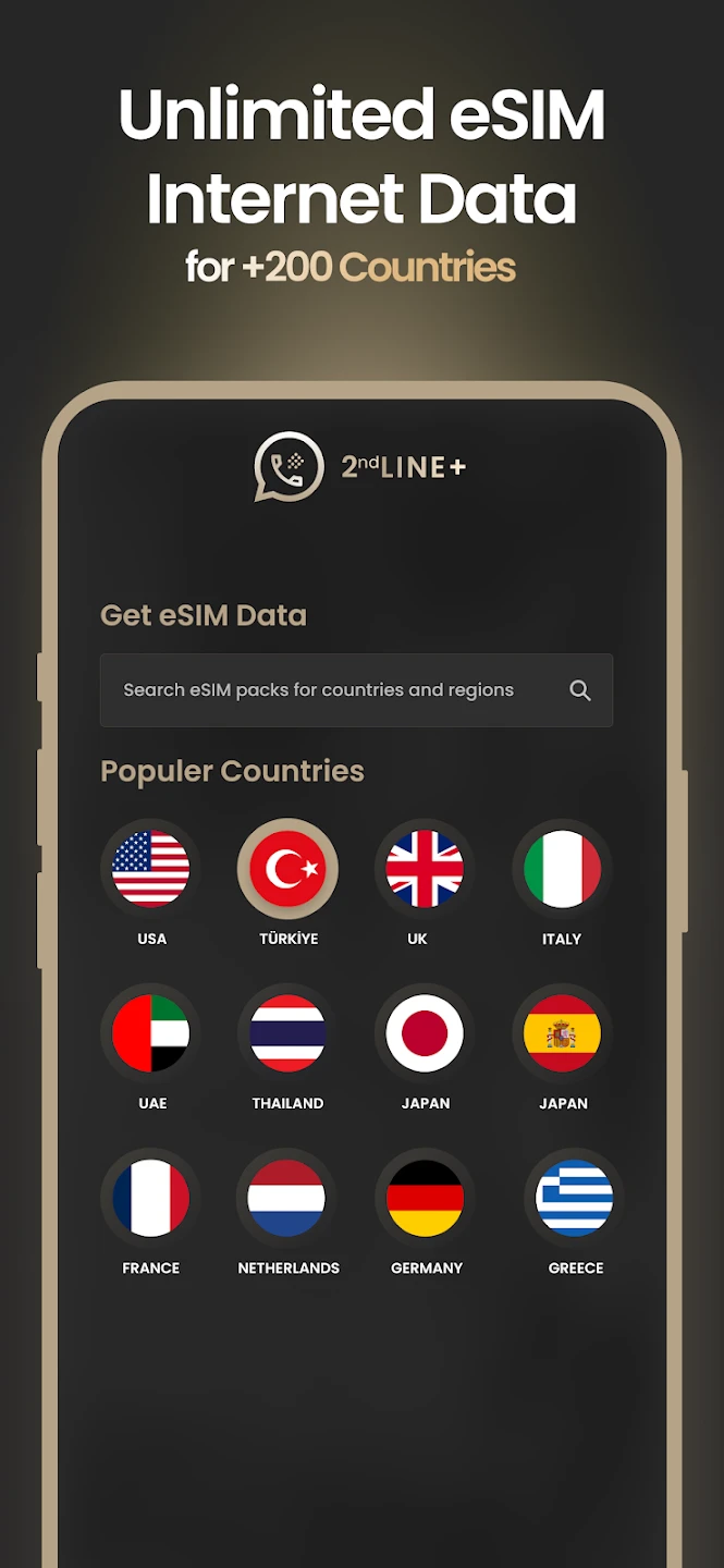 The 2nd Line+ Phone Number & eSIM app allows users to manage virtual phone numbers across multiple networks alongside their primary device lines and eSIM profiles. It offers a dashboard view for active lines and connectivity status, catering to frequent travelers, remote workers, and businesses needing flexible communication solutions without needing multiple physical devices.