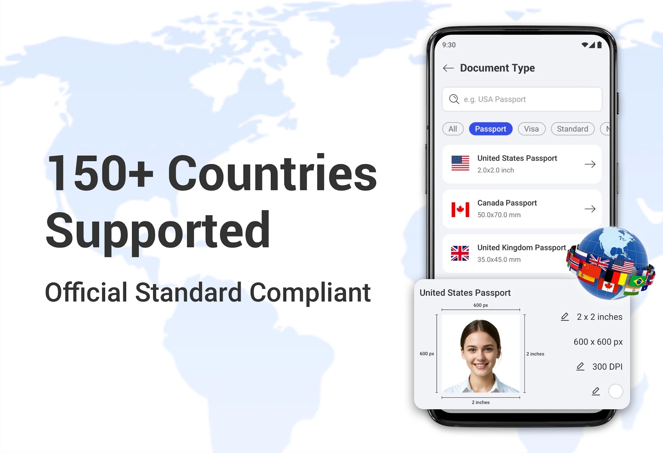 A: The AI Passport & ID Photo Maker incorporates thousands of templates and parameters corresponding to global standards, automatically adjusting your photos based on which country’s requirements you select. This eliminates the guesswork compared to generic passport apps.