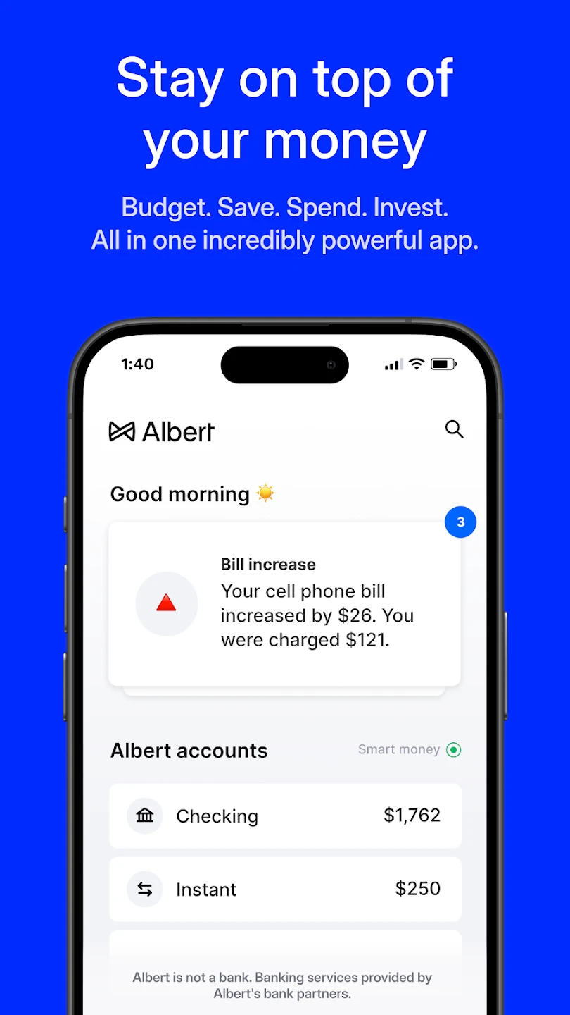 Albert: Budgeting and Banking is a comprehensive financial management application designed to simplify personal banking, investing, and budgeting tasks. This all-in-one platform enables users to monitor accounts, manage budgets, track expenses, and explore investment options—all within a single interface that syncs with financial institutions. Perfect for both beginners establishing financial habits and experienced investors managing complex portfolios.