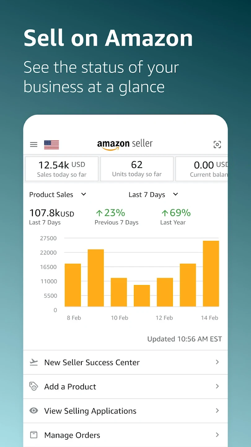 The Amazon Seller app is a powerful mobile tool designed exclusively for Amazon FBA sellers. It allows direct communication and management with Fulfillment by Amazon (FBA) operations, providing real-time updates on orders, inventory, performance metrics, and shipment status. Perfectly tailored for third-party sellers utilizing Amazon’s fulfillment services to manage their growing e-commerce businesses efficiently from anywhere.
