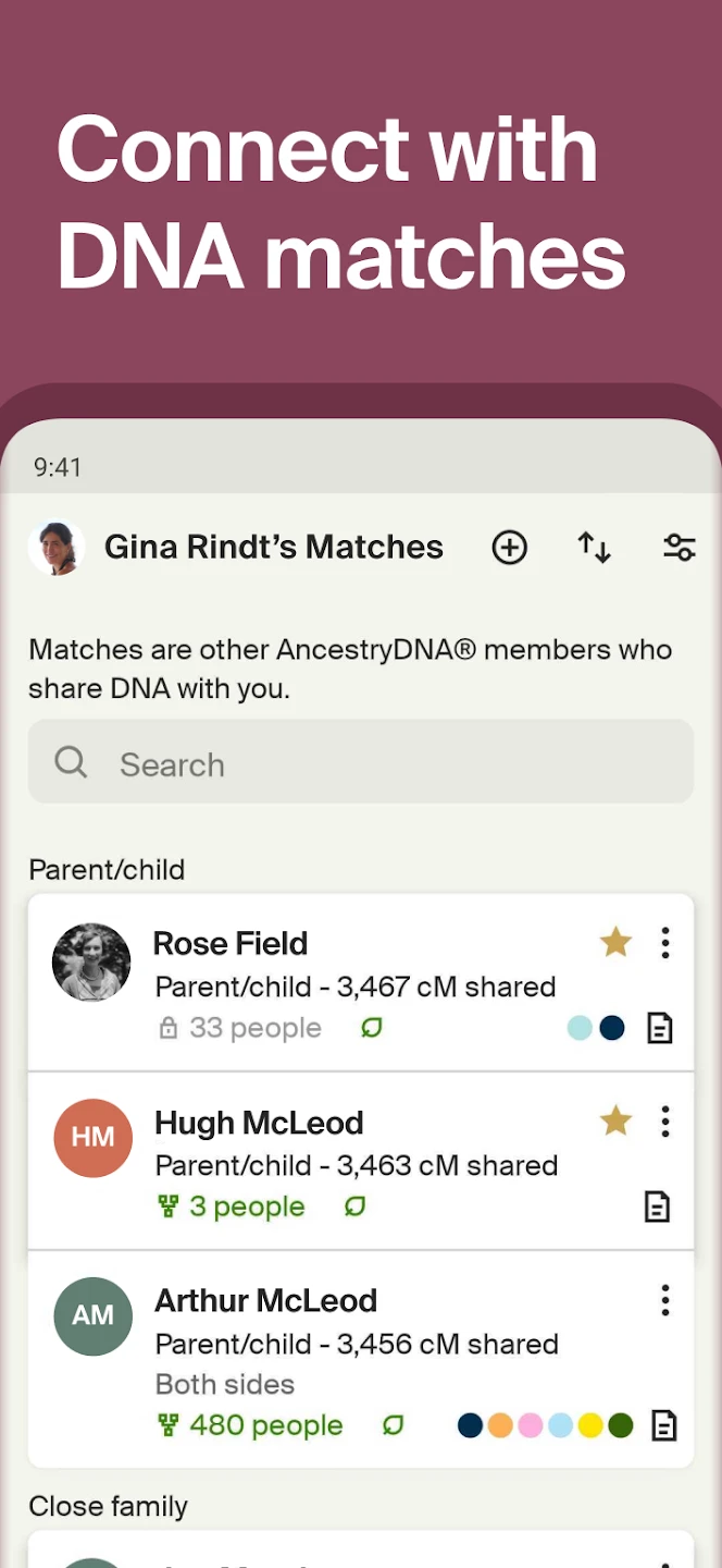 - Smart Matching for DNA & Family Trees: The app automatically matches individuals on your tree to their closest living relatives among other users and suggests DNA matches based on shared DNA segments. This feature simplifies the challenging process of identifying biological relatives by providing hints and connections that might otherwise be missed, saving users hours of manual searching.