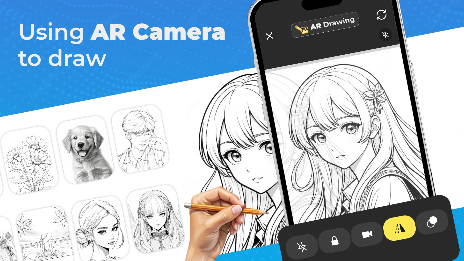 • Real-time AR Canvas: Instantly transform any flat surface into a digital workspace by simply opening your camera. This dynamic feature allows you to sketch directly onto furniture, walls, or tables, making the creative process more intuitive and immersive than traditional tablet apps.