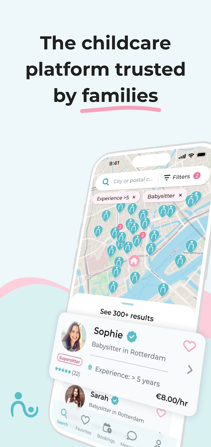 A: Babysits – Find Babysitters uses location-based search and filters (like experience level, age groups, certifications) to help you find local Babysits based on your criteria. You can review their verified profiles, including references and ratings, and book directly through the app.