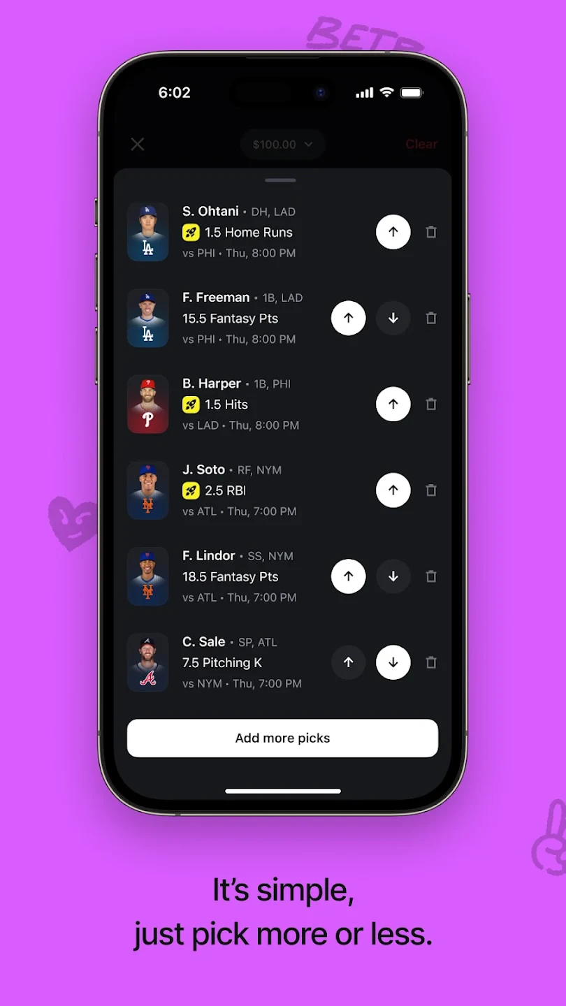 - Performance Analytics: Get detailed insights on your fantasy teams and betting selections through interactive charts and statistical comparisons. The app offers daily picks suggestions from professional analysts to enhance your betting strategy while helping you understand why certain selections have proven success rates.