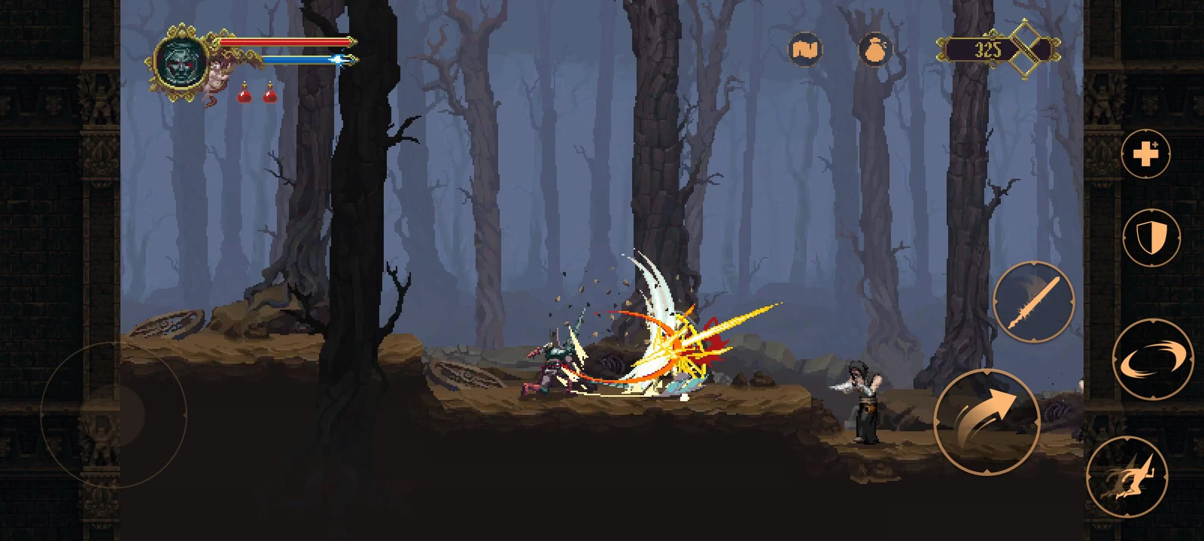- [Controls or Interface]: Blasphemous utilizes intuitive keyboard controls (arrow keys for movement, spacebar for jumping, specific keys for dodging, rolling, and attacking) or touch controls optimized for mobile platforms, depending on the version. The controls are generally considered easy to grasp but challenging to master; precise timing is crucial. The ease of control lies in its responsive inputs and well-placed checkpoints, though the difficulty often makes mastery a significant challenge.
