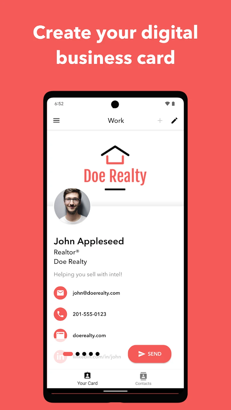 • Unified Contact Management: Seamlessly manage all your digital and physical contacts within a central dashboard view. The app allows quick access to contact details and facilitates quick sharing across multiple platforms or recipients, improving organization and follow-up efficiency.