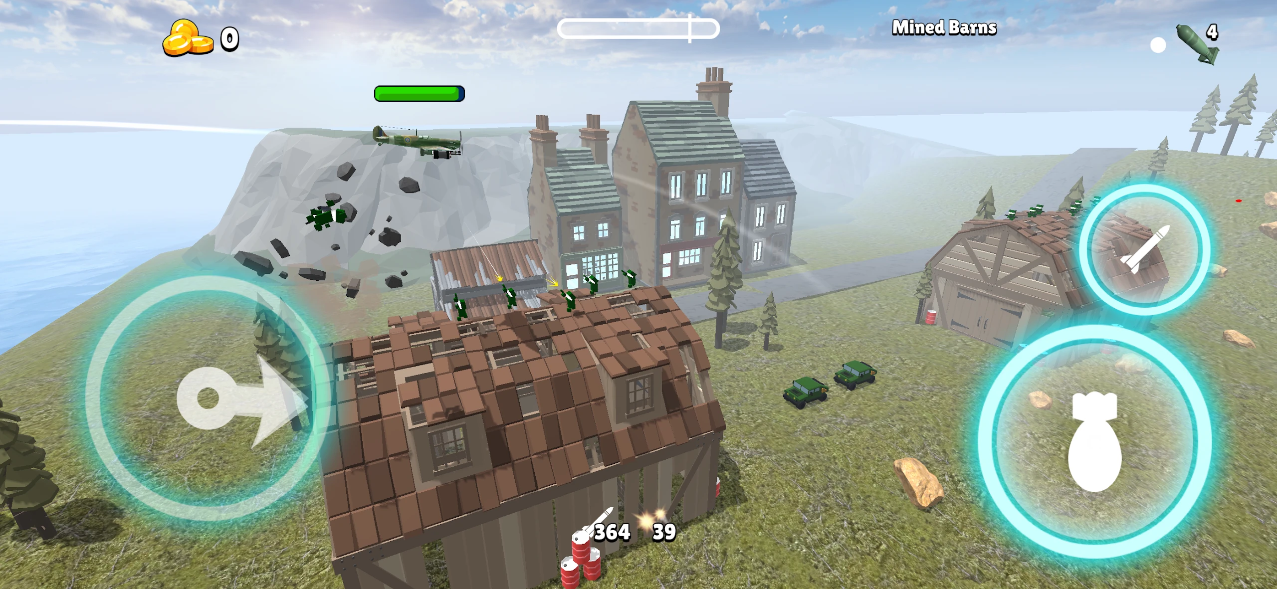 • Controls or Interface: Intuitive touch controls allow precise aircraft movement, weapon aiming, and camera adjustments. The on-screen joystick offers responsive flight controls, with on-demand targeting reticles and mission objectives clearly displayed at the bottom of the screen for easy reference.