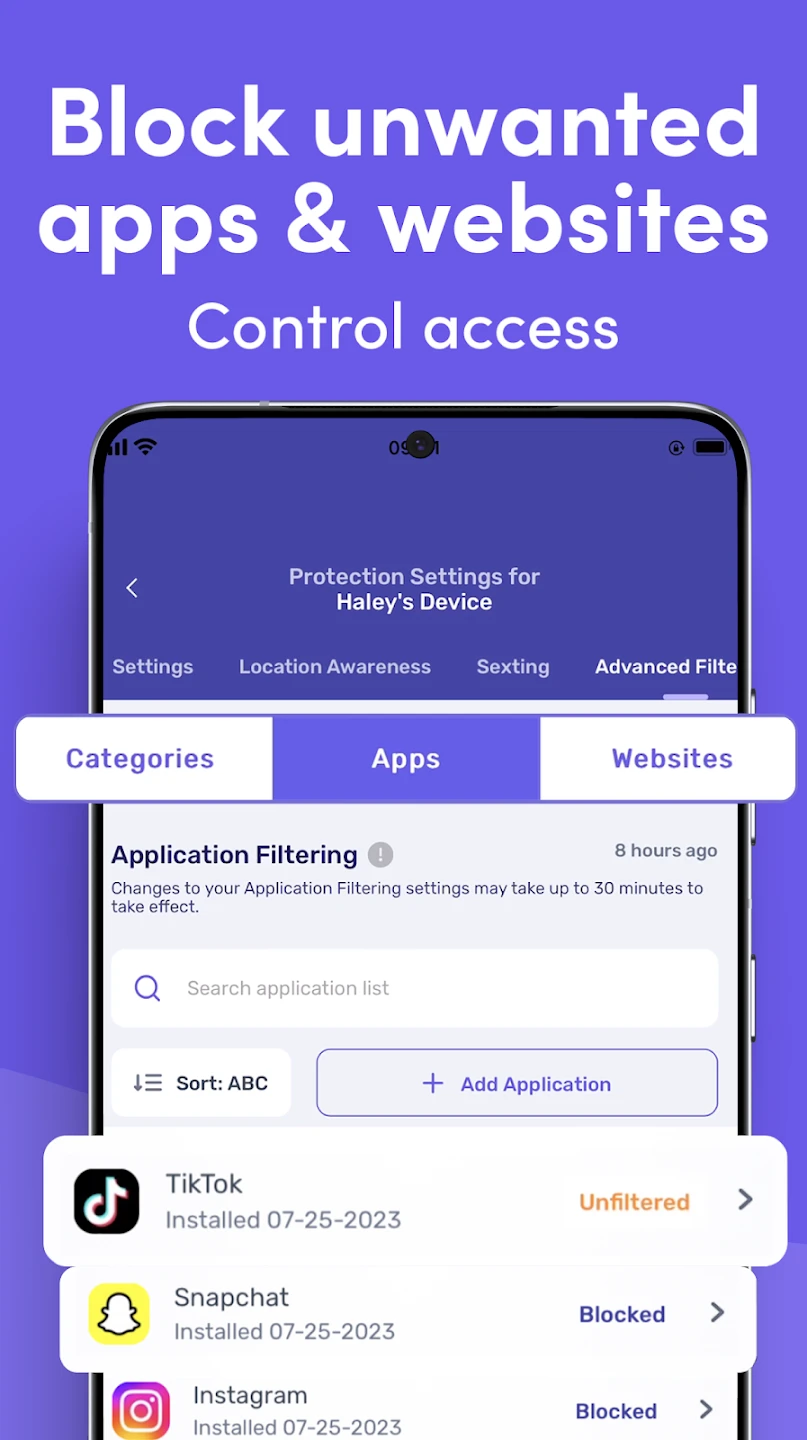 • Application Management: Temporarily freeze specific apps or set usage duration limits per week directly from the Canopy interface. This feature helps manage gaming time effectively, especially during family movie nights or study sessions, by ensuring apps like TikTok don’t consume excessive time. Silent mode override lets you discreetly check usage if you need to address potential overuse.