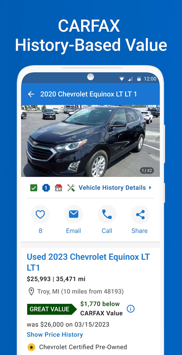 A: Absolutely. The CARFAX – Shop New & Used Cars app is designed to provide history reports for both new and used vehicles, giving you peace of mind before committing to any purchase, new or pre-owned.