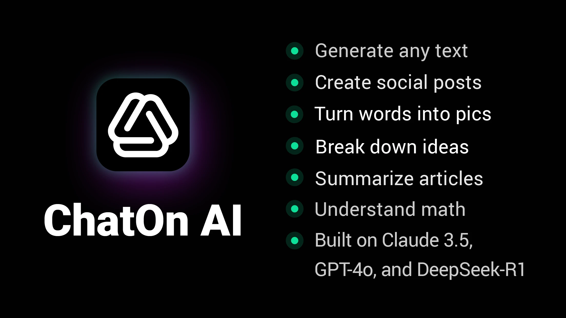 - Cross-Platform Availability: Available on iOS, Android, and web browsers, ChatOn syncs conversations across devices so you can ask questions on the go, at work, or at home seamlessly.