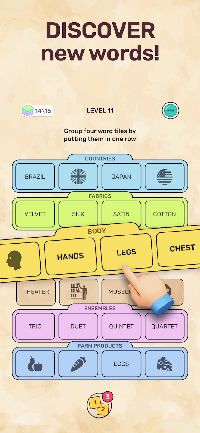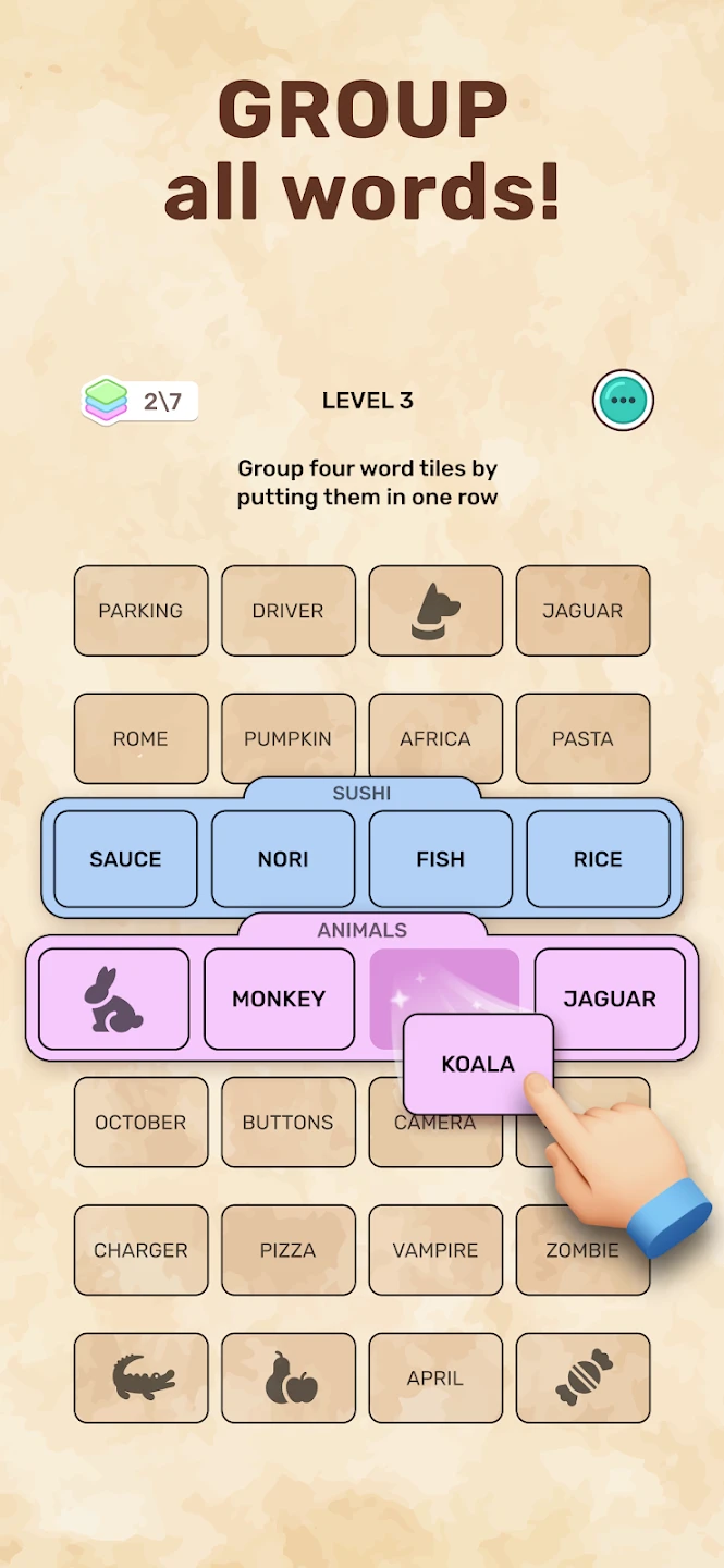 • Visuals or Art Style: The interface features vibrant, cartoonish graphics with smooth animations for word connections, creating an engaging and user-friendly experience with a focus on clean, colorful visuals.