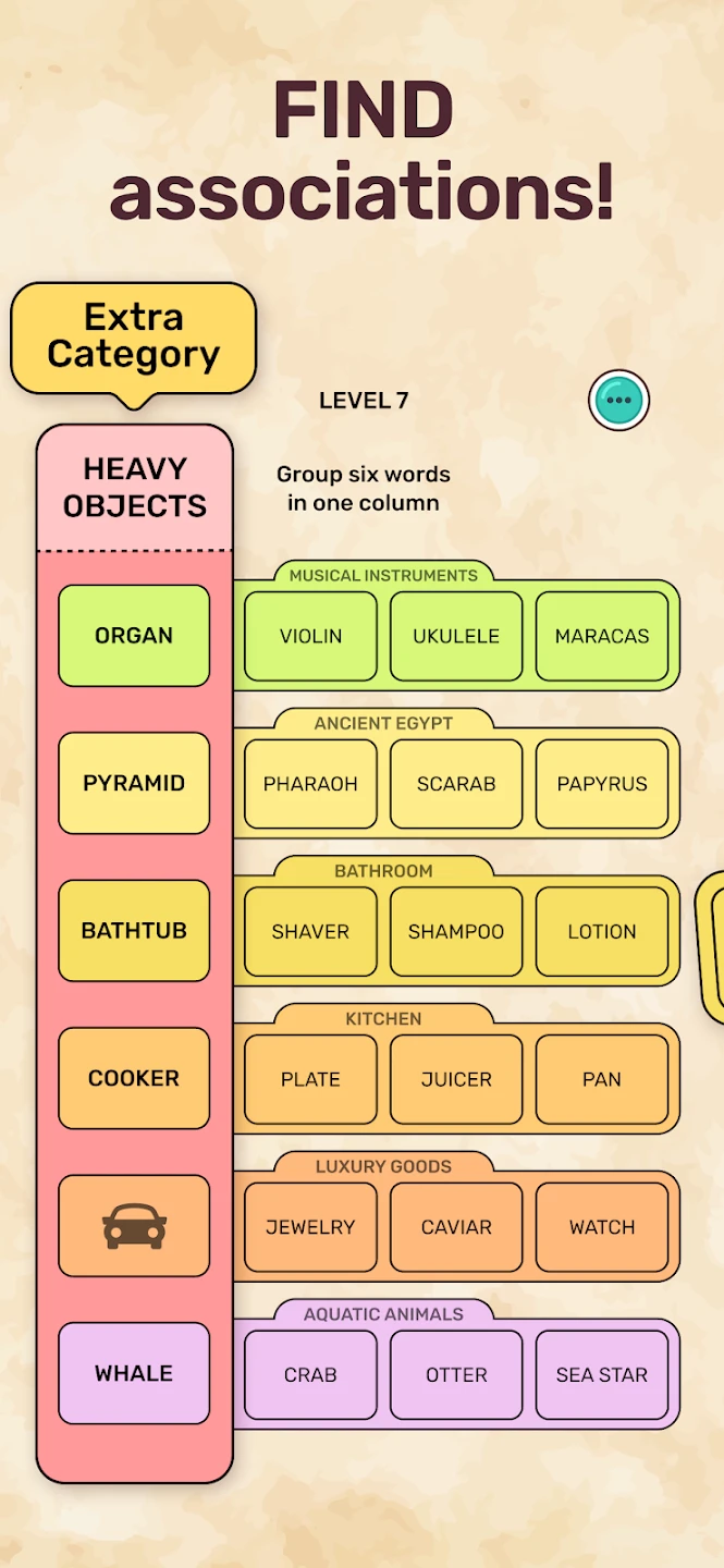 • Think beyond the obvious connection between words to unlock streak bonuses and higher points.