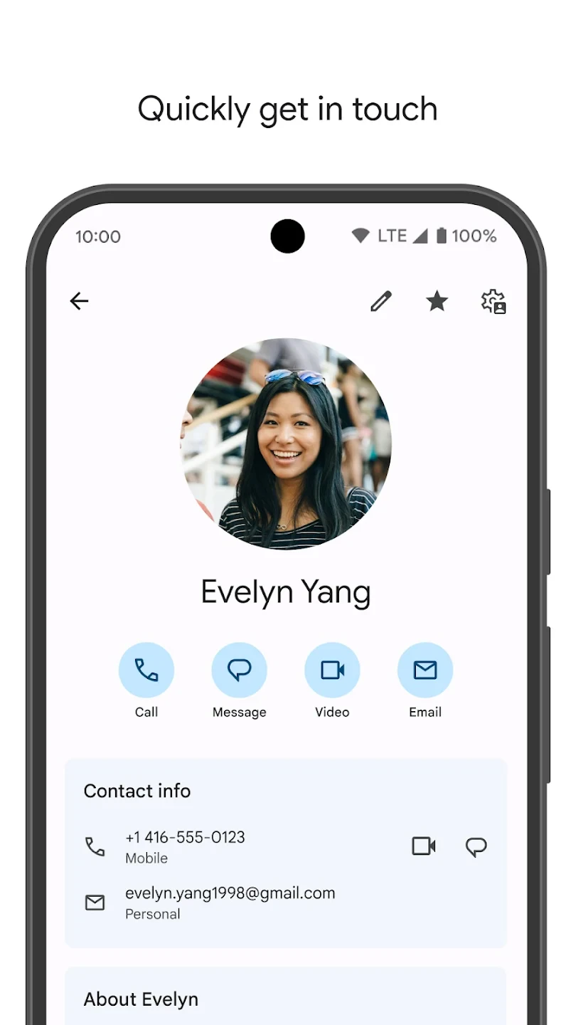 - Clean Contact Interface: This feature streamlines navigation with a modern design. Visually highlighting photos and details under tap makes finding contacts faster and reduces screen clutter significantly, especially with large address books.