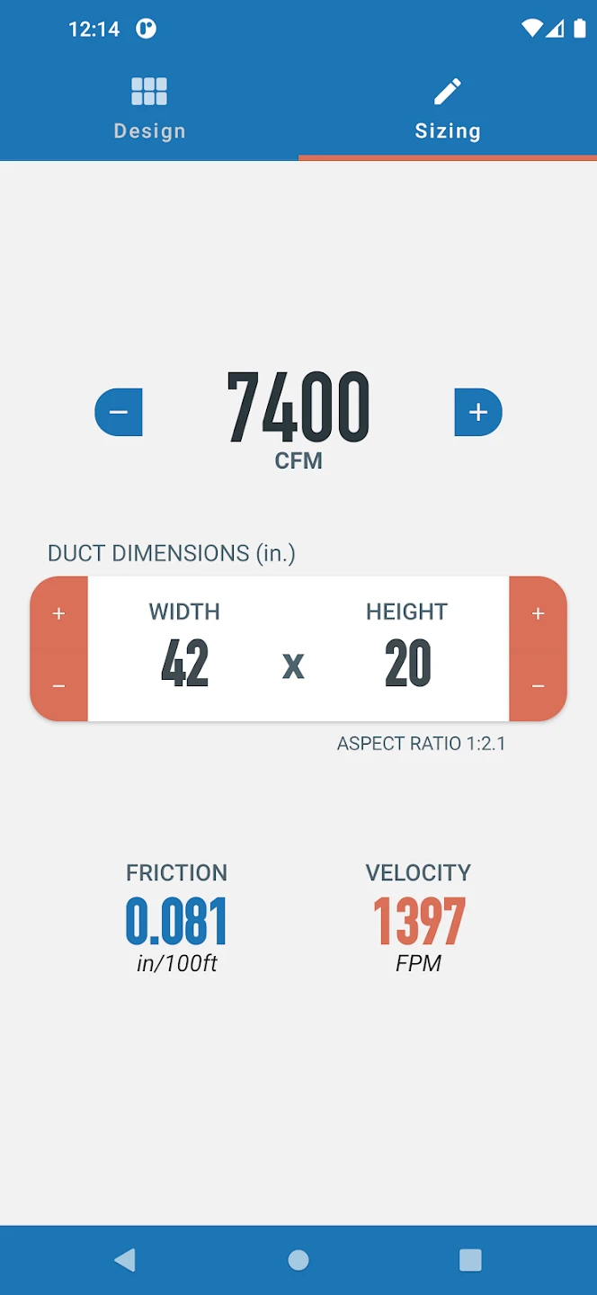 - Basic Duct Sizing: Calculates round or square duct dimensions based on airflow volume (CFM) and velocity, providing immediate results for quick system layout. This saves time during initial design phases, allowing users to visualize duct runs faster.