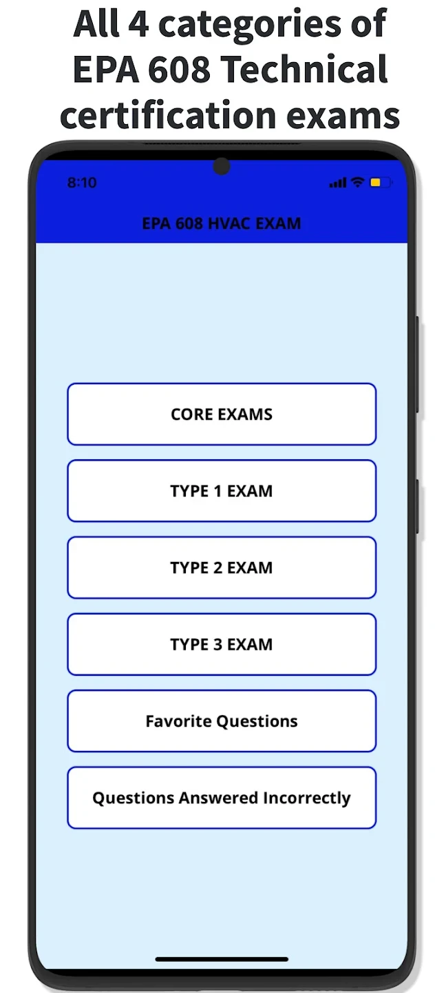A: Absolutely! The app usually offers practice questions covering all three types (I, II, and III) of the standard EPA 608 certification. Check the app’s settings or description to confirm it covers the specific certification pathway you are aiming for, like Universal (Type I), Moderate (Type II), or High-Intensity (Type III).