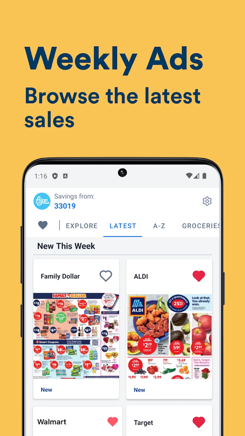 • Deal & Coupon Notifications: Flipp provides personalized notifications about current promotions and digital coupons available at specific stores, ensuring you know the best offers before you shop. This feature saves time and money by delivering relevant discounts straight to your device, reducing the need for manual coupon hunting and helping you adhere to your grocery budget.