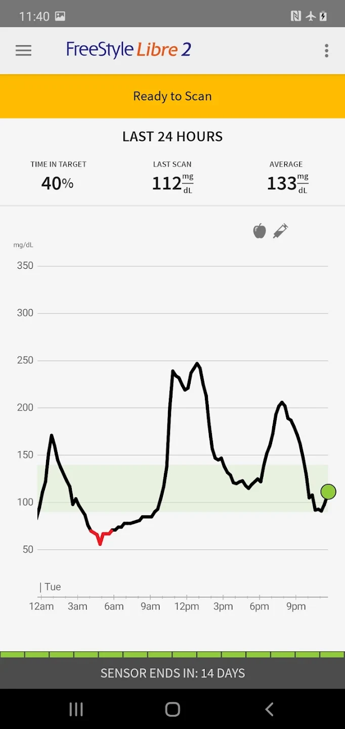 A: Scanning every 8 hours typically provides a full picture; however, you can scan as often as you like. For optimal data integrity and to catch fluctuations, we recommend scanning at least once daily or when you notice inconsistent readings. The sensor has a 14-day lifespan per insertion.