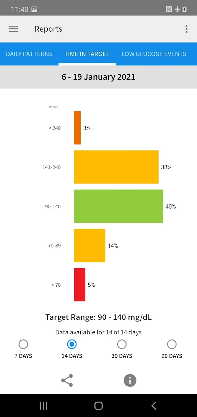 - Daily Glucose Summary & Insights: Access automated reports in the app showing time-in-range and glucosedaily averages, helping users understand their patterns and contributions. This is especially beneficial for those managing tighter glycemic control or preparing HbA1c reports for healthcare consultations.
