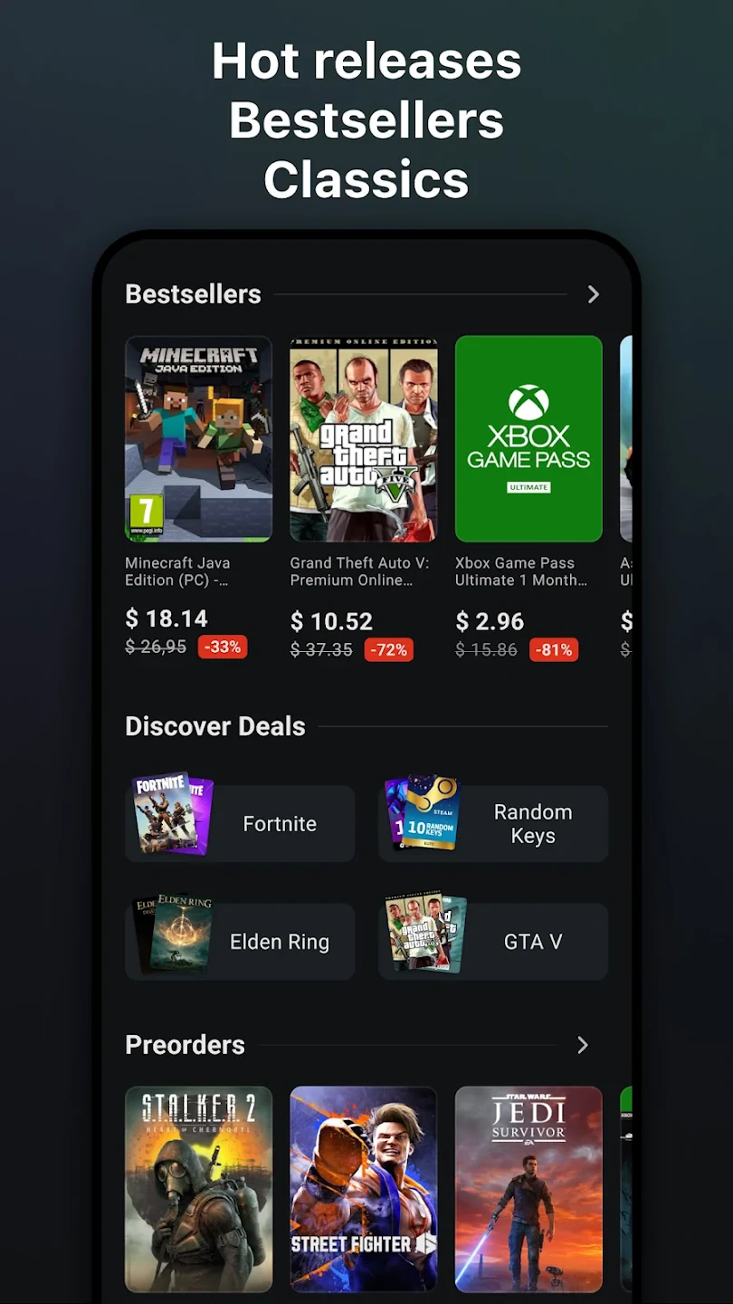G2A is a digital marketplace platform designed for PC gamers, offering a wide selection of games available through major digital storefronts like Steam, GOG, and Epic Games Store. Essentially, it functions as an intermediary, providing users access to games already sold on these platforms but facilitating the purchase directly from the publisher or developer at potentially lower prices. The app caters specifically to individuals looking for access to a diverse gaming library, particularly those games that might be hard to find or priced differently across various platforms.
