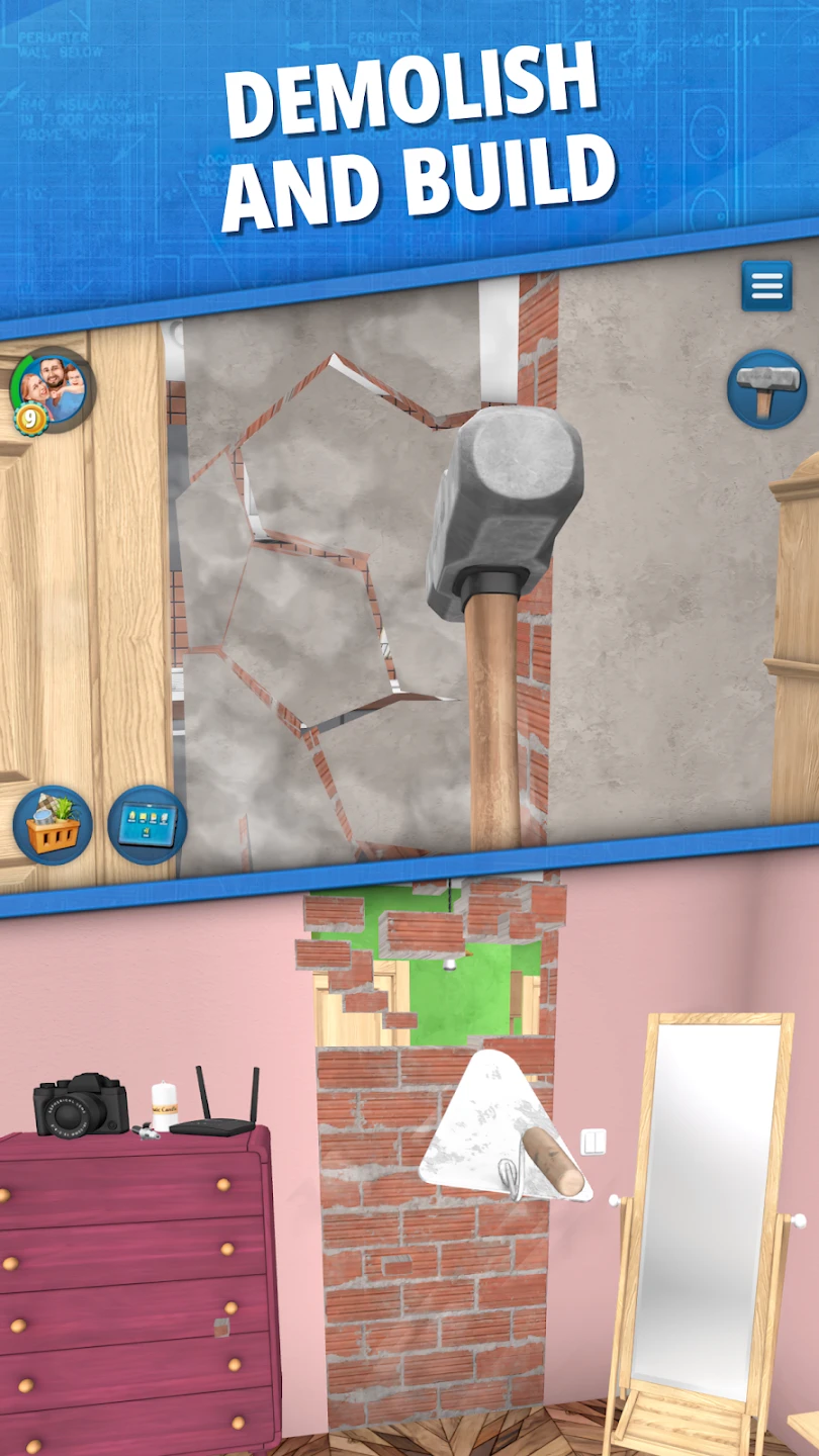 • [Controls or Interface]: Intuitive touch controls allow easy navigation through the inventory system, budget management, material selection, and room-specific tools, making the gameplay accessible to both casual and strategic players.