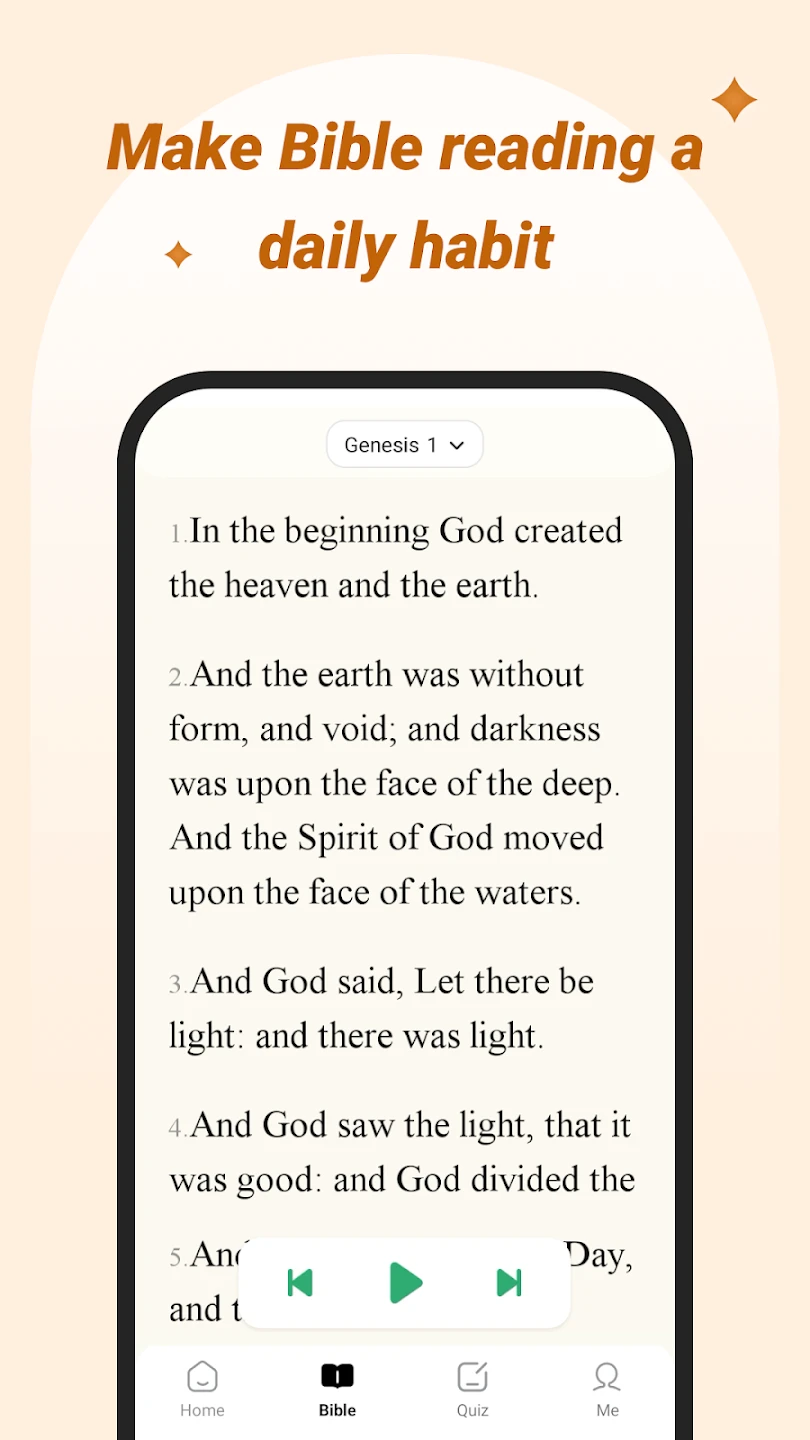 • Versatile Audio Player: This feature enables users to play the KJV Bible readings directly within the app, choosing different books, chapters, or verses. The ability to easily select any passage saves time and streamlines the study process, making it ideal for focused exploration or personal reflection.