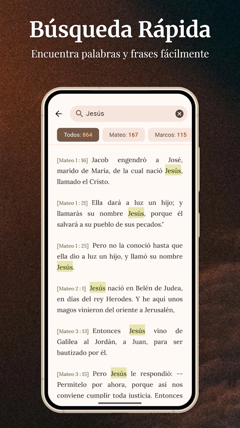 - Bible Concordance: Search for specific verses across all translations and bookmark valuable passages for later reference or sharing. Its powerful searching capability streamlines research, allowing users to quickly locate relevant verses for answering questions, preparing sermons, or understanding complex themes, significantly saving time and deepening comprehension.