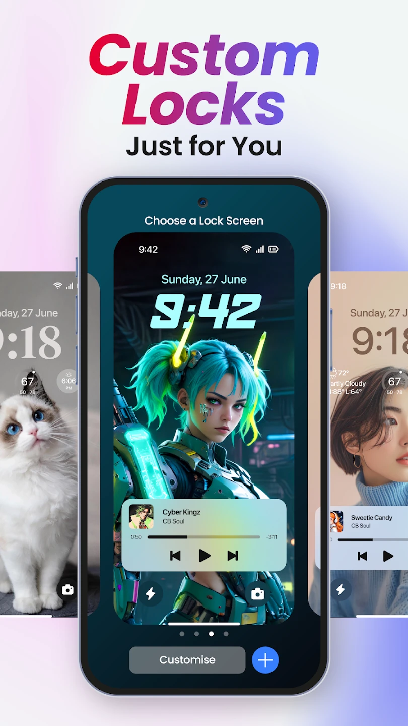 - Dynamic Lock Screen Interface: Unlike standard lock screens, Lock Screen OS allows for fully personalized layouts, themes, and animations. Users can display different information (like a quote widget during morning hours and a fitness tracker widget in the evening), enhancing the user experience with personalization.