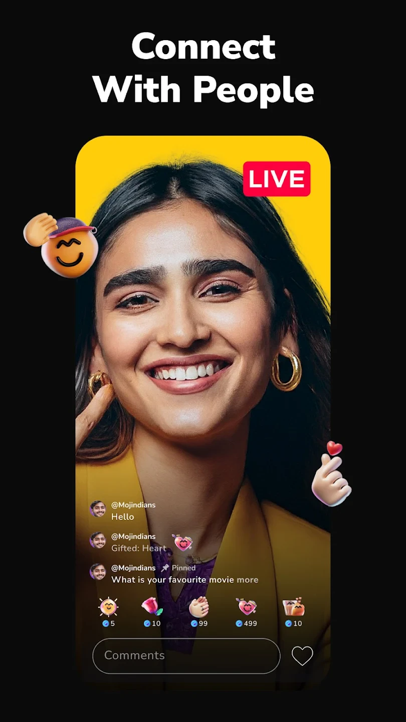 - Intuitive Video Creation: This feature provides a simple interface for recording video and adding text overlays, filters, and simple edits directly within the app. It benefits users by enabling them to share ideas, moments, or experiences quickly without needing separate editing software, perfect for someone wanting to document their day and share instantly via Moj: Short Videos & Reels.