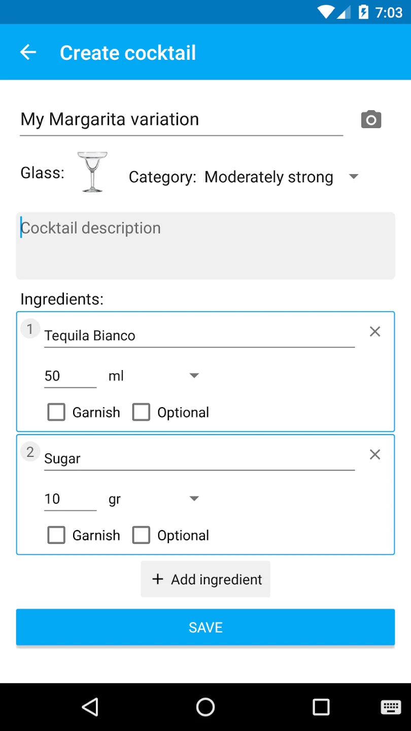 - Comprehensive Recipe Database: My Cocktail Bar Pro includes a vast library of classic and modern cocktails, searchable by name, ingredients, or even alcohol content. This extensive collection saves you the effort of memorizing drinks, allowing you to focus on mixing and impressing your guests with a wide range of options.