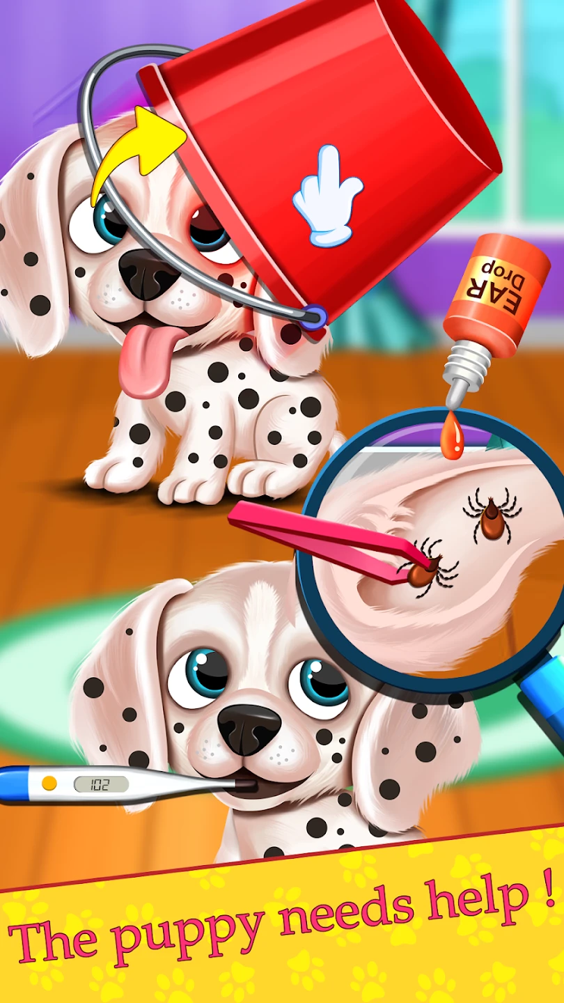 The gameplay revolves around managing resources, decorating the salon, and providing various grooming services to happy customers. Its colorful, adorable visual style featuring cute cartoon puppies and cheerful environments is sure to appeal to fans of relaxing pet care simulations.