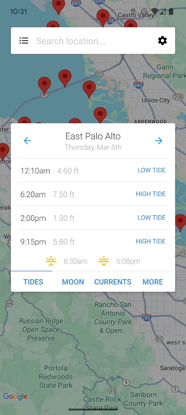 - User-Friendly Interface & Notifications: Designed with a clean layout, the interface is intuitive and easy to navigate, even with gloves on. Additionally, users can set notifications for specific tide events like high tide, low tide, or specific moon phases, ensuring they never miss a crucial moment relevant to their plans. This offers significant time-saving benefits and enhances the user experience.The straightforward design ensures quick information retrieval even in less-than-ideal conditions.