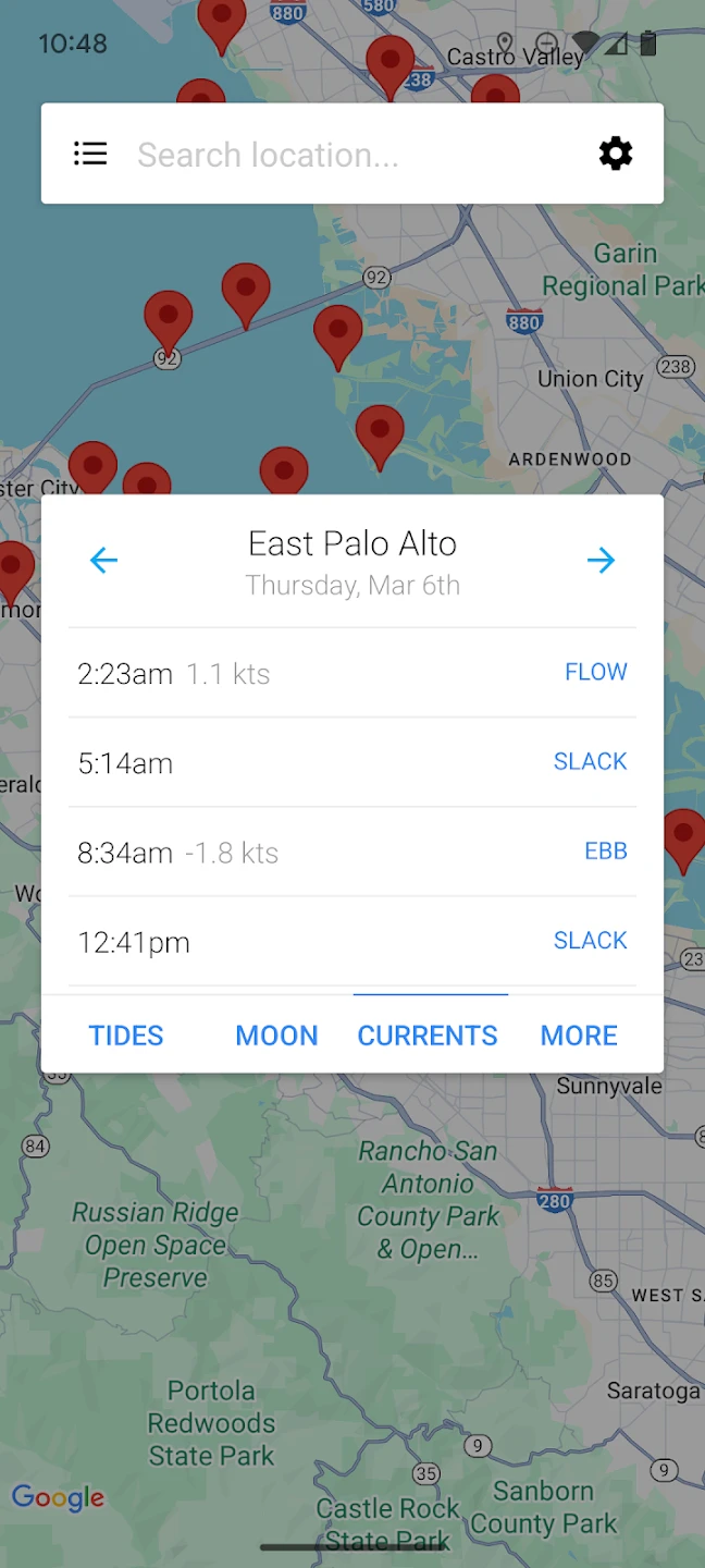 - Search Functionality & Global Data Access: The app features a robust search tool allowing users to find locations globally and easily access tide charts and predictions for virtually any coastal area, ensuring reliable information for travel or exploration worldwide. It highlights key locations and offers quick access to tide predictions for your next trip.Find tides for any location on Earth instantly using a powerful search.