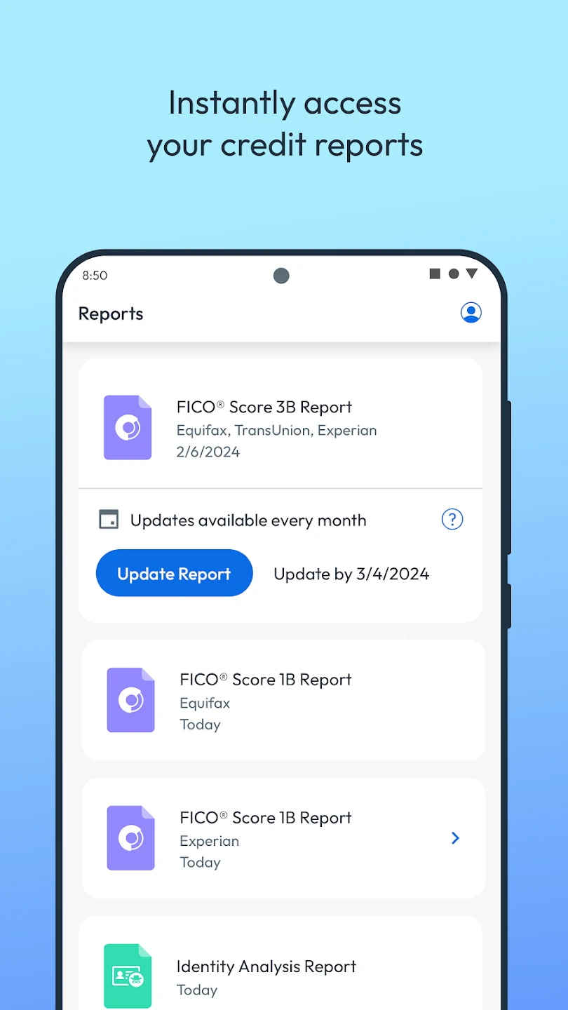This app offers access to Experian credit information, including credit reports, score tracking, and identity theft services, providing a different bureau perspective alongside FICO. |