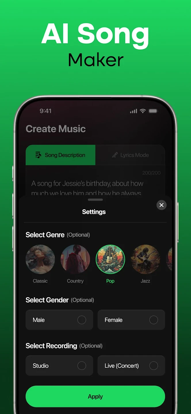 - Customizable Style & Genre Blending: Users have fine-grained control to influence the output style within a genre, allowing for mixing elements to create unique sounds. For example, requesting “jazz with a rock drum kit” or adjusting complexity levels, making the app versatile for different creative visions.