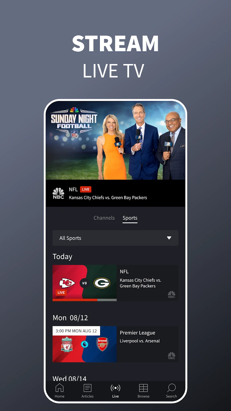 • Live Game Streaming: Instantly watch Major League Baseball, the NBA, and Sunday Night Football on your smartphone or tablet. This feature eliminates the need for multiple streaming services or cable subscriptions, letting you enjoy premium sports content anytime, anywhere.