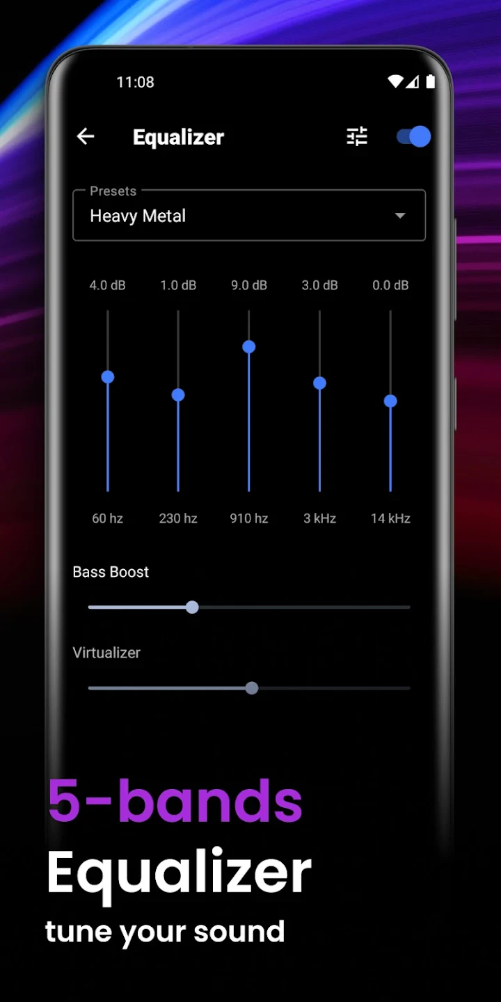 - Equalizer Settings: The app includes a comprehensive equalizer with presets for various genres and adjustable sliders for bass, treble, and balance, allowing users to tailor the audio profile to their environment and personal preference. This audio engineering tool significantly enhances listening quality on different devices and in various acoustic settings.