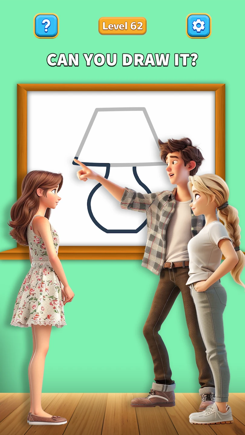 - [Controls or Interface]: Controls are touch-based, utilizing simple on-screen buttons for actions like restarting a level. Players initiate the draw by tapping a gem and then swipe or drag across the screen to create the single continuous line connecting the selected gems. The interface is designed for ease of use on mobile devices, with clear visuals guiding the player’s touch.