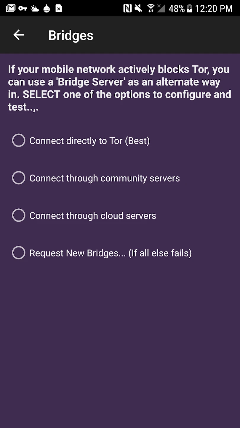 • Background Operation: Orbot can run discreetly in the background, ensuring continuous anonymity without disrupting other app functions, ideal for maintaining privacy during extended browsing sessions. The automatic kill switch feature further enhances security by disconnecting the internet if Tor fails.