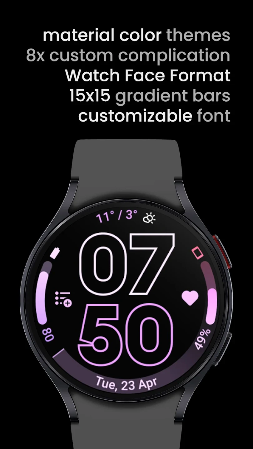 • Customizable Outline Styles: Easily modify the thickness, color, and shape of clock elements like hour markers, minute marks, and the central circle. This flexibility lets users create a unique visual identity perfectly suited to their wrist and personal style preferences.