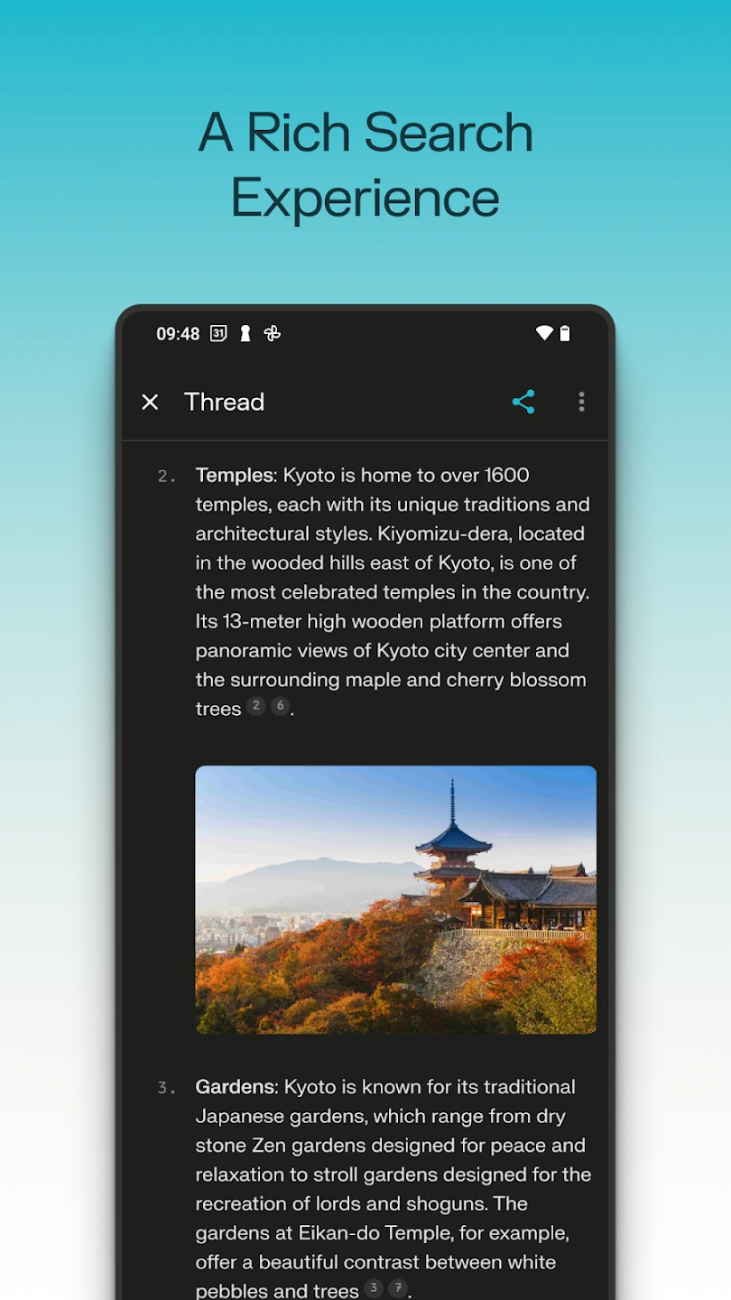 Academic-focused search tool emphasizing scholarly sources and citation tracking across university publications and journals. Ideal for graduate students and researchers needing verifiable references.