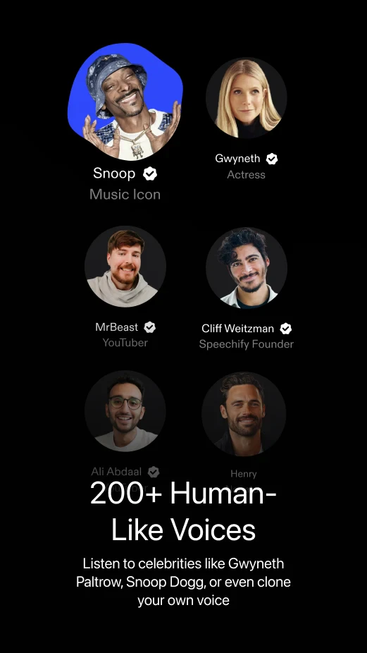 Designed for simplicity and mobile-first usability. Includes guided steps and real-time previews, making it easy to use for quick text conversion like Speechify – Text to Speech. |