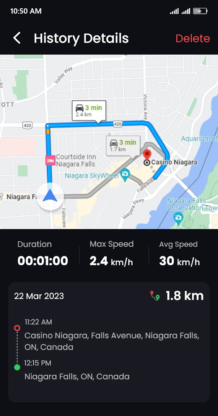 - Trip Tracking & Calculation: Easily record multiple trips, noting details like start time, end time, and distance traveled for each. The app automatically calculates trip duration and average speed, providing clear insights into journey performance and helping manage logistics or personal driving goals.