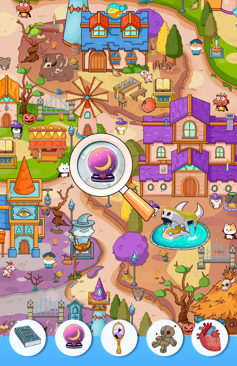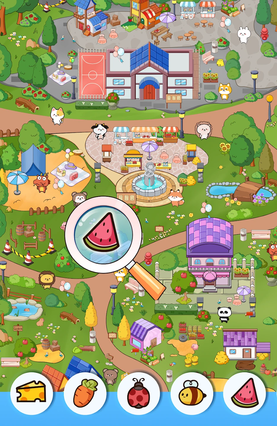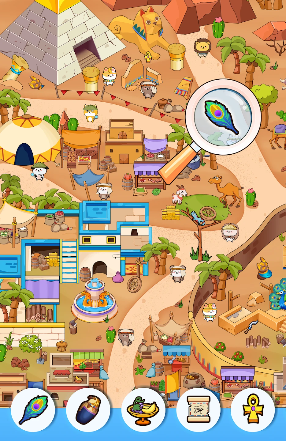 - [Core Gameplay Loop]: Players must find designated items hidden within complex backgrounds within a time limit. The objective is to complete levels by locating all required objects, with increasing difficulty in item placement, scene complexity, and time pressure as you progress.