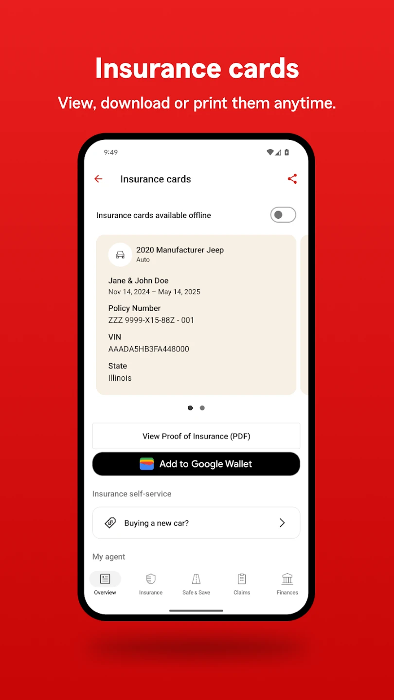 - Agent Chat: Communicate securely with your State Farm® agent instantly inside the app for quick answers to your policy questions.