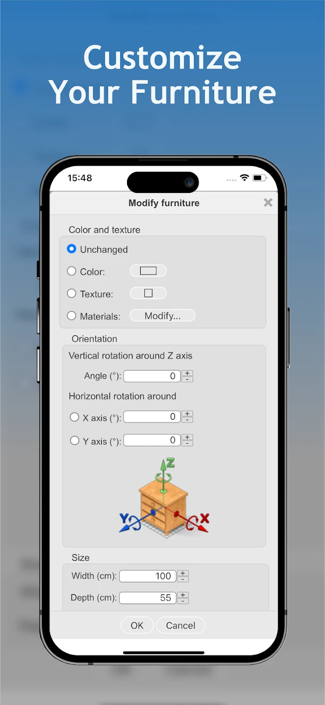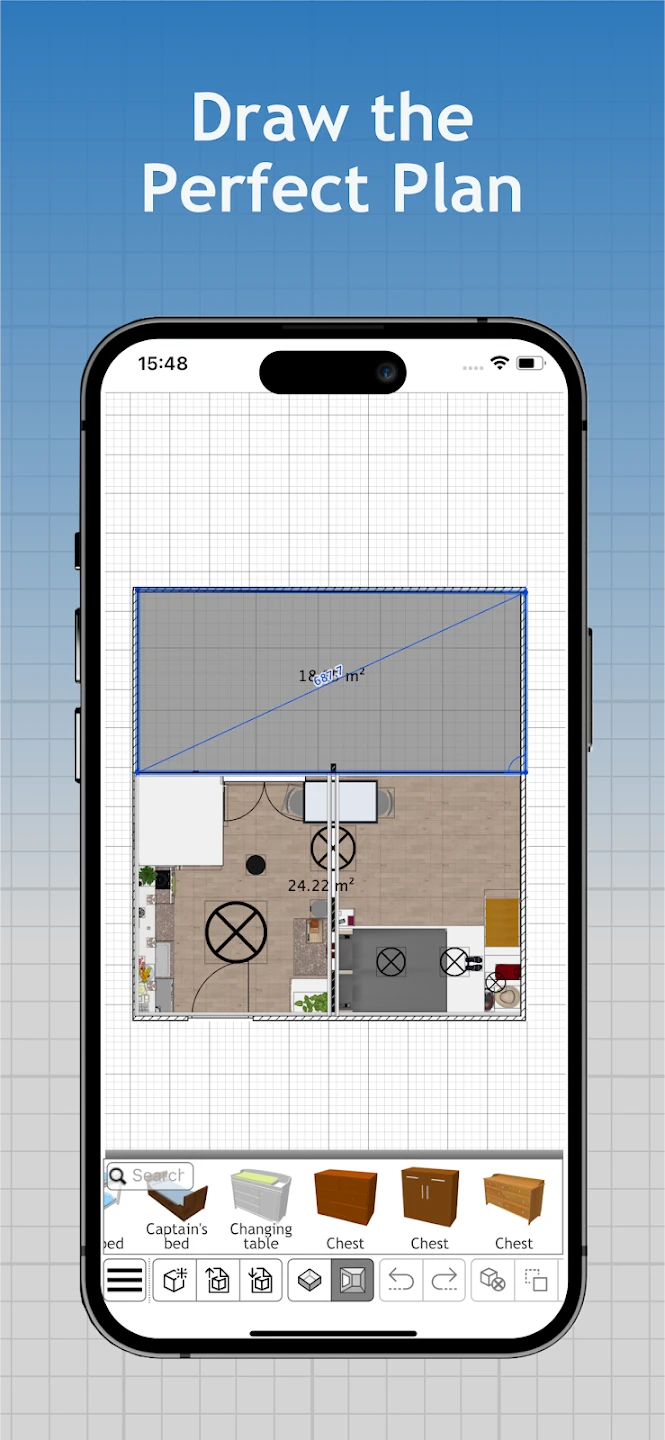 • Measurement Tools: Seamlessly measure existing rooms using your phone’s camera and GPS, then scale imported photos into accurate design surfaces. This powerful feature transforms your physical space into a precise digital canvas, enabling perfect proportioning of elements and accurate furniture placement based on real-world dimensions.