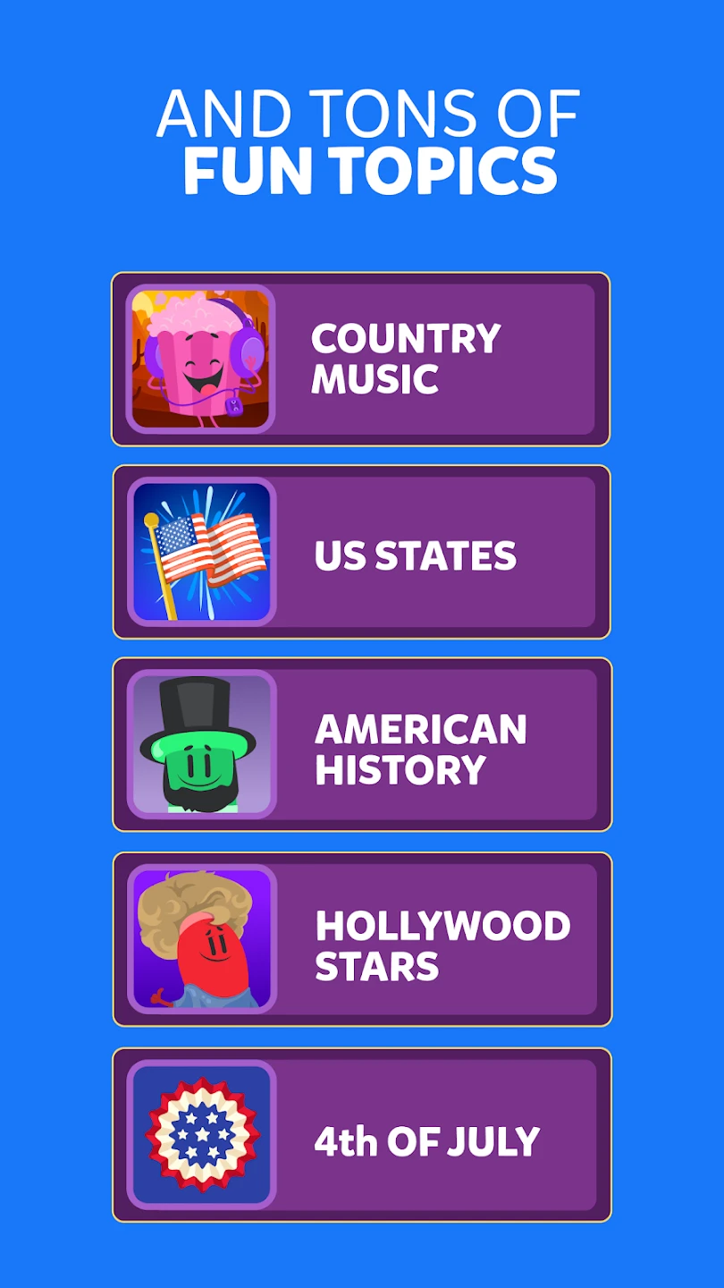 Appeals to players seeking quick-fire trivia, often with a cartoonish and colorful visual style aimed at a broad audience including casual gamers. |