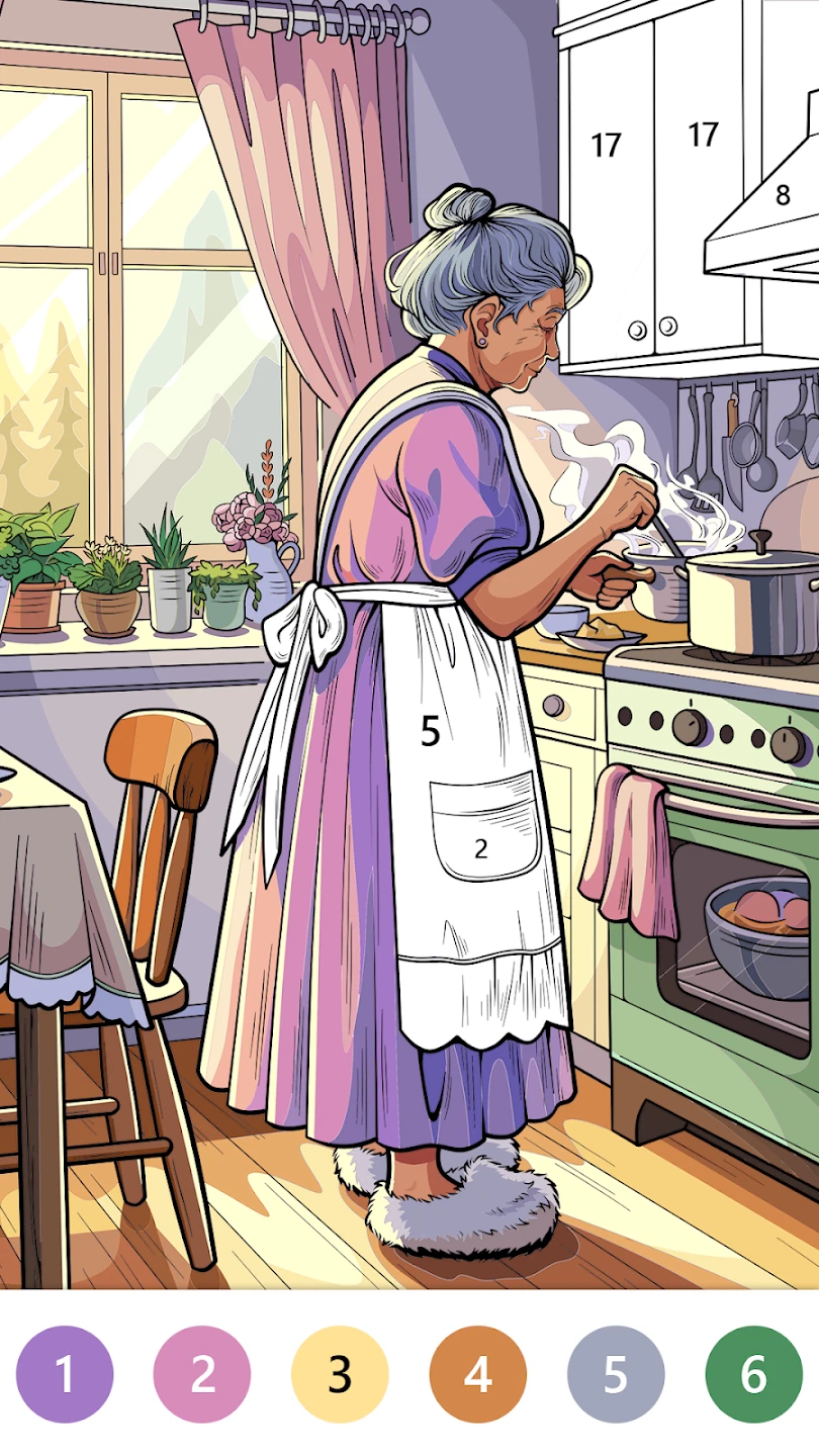 - Controls or Interface: The touch controls feature an intuitive interface where players tap numbered cells to select the next color, drag across the grid to fill large areas efficiently, and use a virtual color wheel or numbered palette for precise selection. The controls are designed with ease of use in mind, making it accessible for players of all ages through straightforward gestures on touchscreen devices.