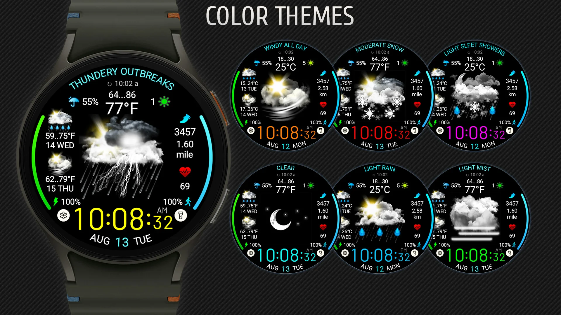 - Highly Customizable Design: Users can personalize aspects like the color scheme, the size and style of weather icons, font choices for temperature displays, and even select which specific weather data points to show based on their smartwatch model’s limitations. This flexibility ensures a unique and comfortable viewing experience tailored to individual style and device capabilities.
