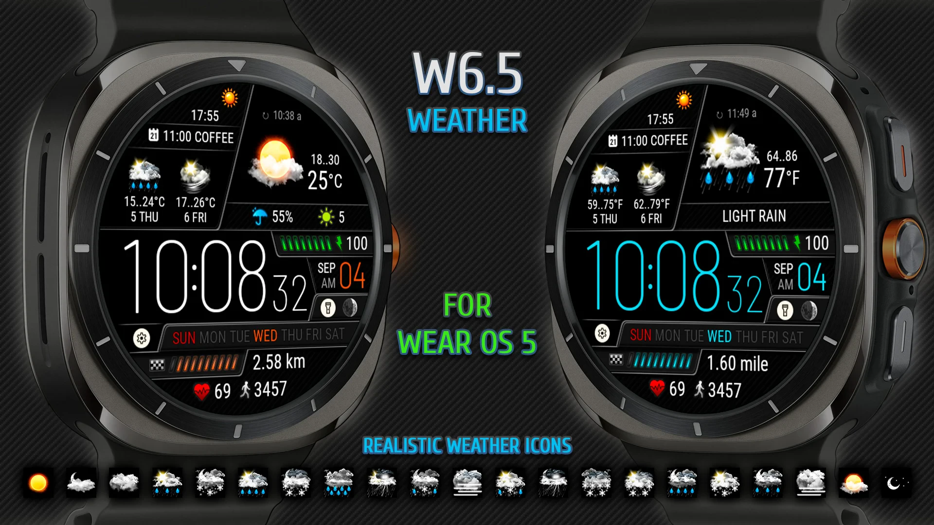 - Live Weather Updates: The Weather watch face W6.5 provides real-time temperature, conditions, and forecasts directly on your smartwatch screen, eliminating the need to constantly pull out your phone. This immediate access is invaluable when you’re outdoors or in a situation where checking your phone isn’t convenient, allowing you to quickly assess the weather and plan your next steps accordingly.