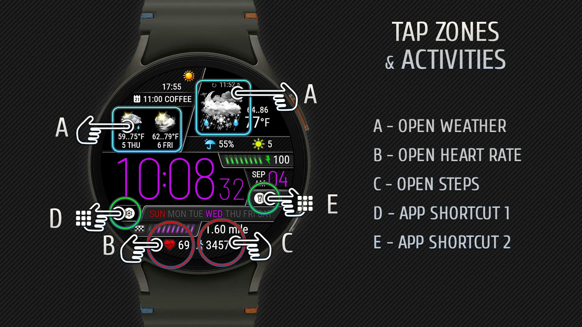 Another popular smartwatch face focused on comprehensive weather, known for its highly detailed widgets and support for complex forecast layers on compatible devices. |